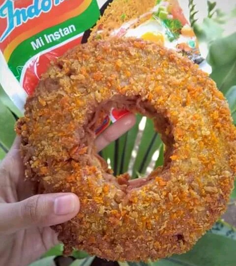 - Balurkan donat ke tepung bumbu, lalu celup ke kocokan telur, dan balurkan tepung panir